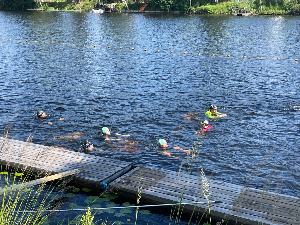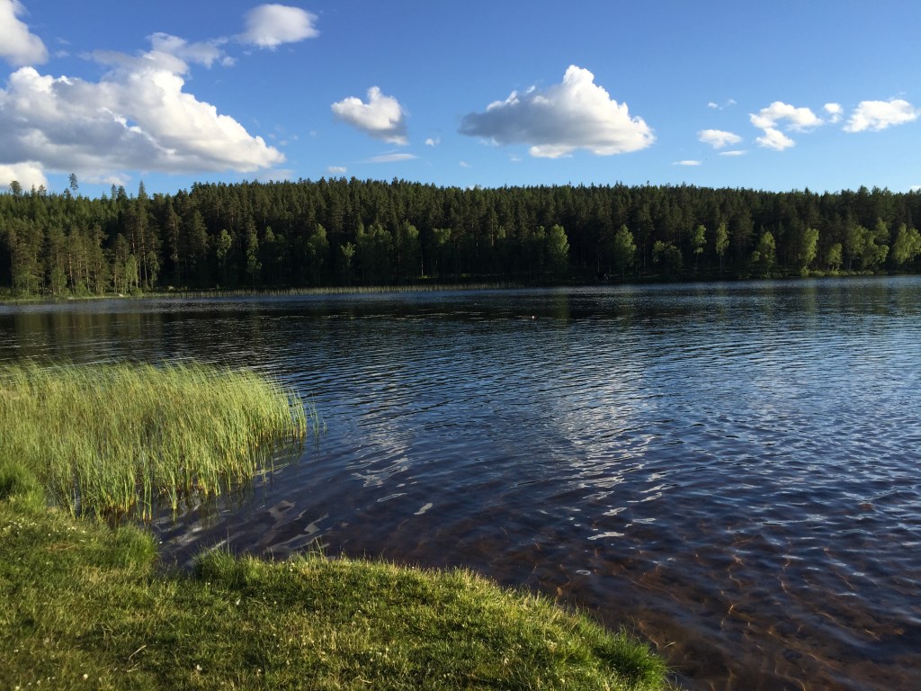 Sedan några dagar har huset varit fullt av mina fem barnbarn, en flickvän till äldsta barnbarnet, min dotter, min mamma och så min man förstås – och vår katt och min mammas katt. Vi har ätit gott, spelat en massa brädspel och kort (jag och de äldre barnen), arrangerat fiskdammar i dagarna två (jag och de yngre barnen), sprungit (jag och dottern, men var för sig), yogat (jag för mig själv före frukost på mitt rum och min mamma för sig själv när hon tycker det passar – hon gör 70 minuter sittyoga varje dag), lekt i lekpark (dottern, min mamma och de yngsta barnen), badat i tjärnen (alla utom jag, för då sprang jag runt den).